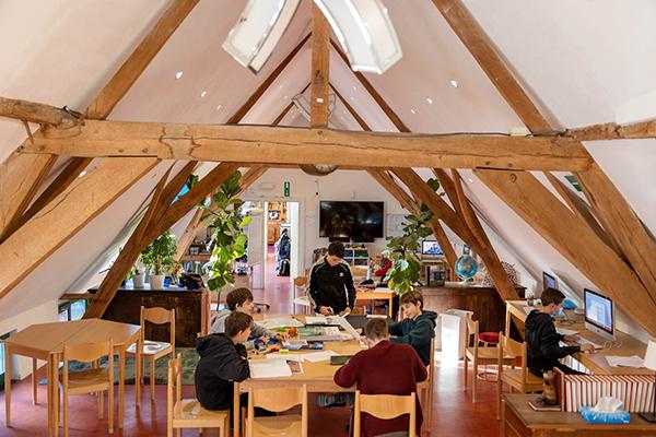 Also here are always two adults with the teenagers, taking care of a variety of subjects and study topics whilst supported by a group of solid and grounded colleagues. Together they ensure that a multitude of ever-progressing topics, study and work areas are introduced, investigated, extended, studied, completed and consolidated. The integration of mind and body by means of the constructive use of the hands is central to the various stages of the curriculum. Always can the developmental needs be found at the forefront. Therefore physical and mental activities are ever present, inside as well as outside.