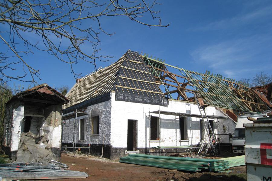 a. Renovating with sustainable and natural materials such as stone, handmade bricks, oak beams, and natural roof tiles. Walls were rebuilt with the original stone and where new bricks were needed a special hand baked Belgian brick was added. Roof tiles are natural and historic and are named the ‘Pottelberger’.