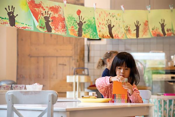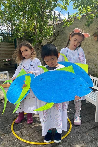 Visual arts starts with art and crafts in the Toddler Community and Children’s House. Children learn different techniques and make objects related to their themes such as making maquettes of the Wall of China, the Taj Mahal in India or closer to home: our own Atomium! Children also paint, colour, draw and glue as part of their daily work cycle. They are exposed to works by many different artists, styles and cultural art forms. Activities are set up in the classrooms in such a way that the children can try them out for themselves.