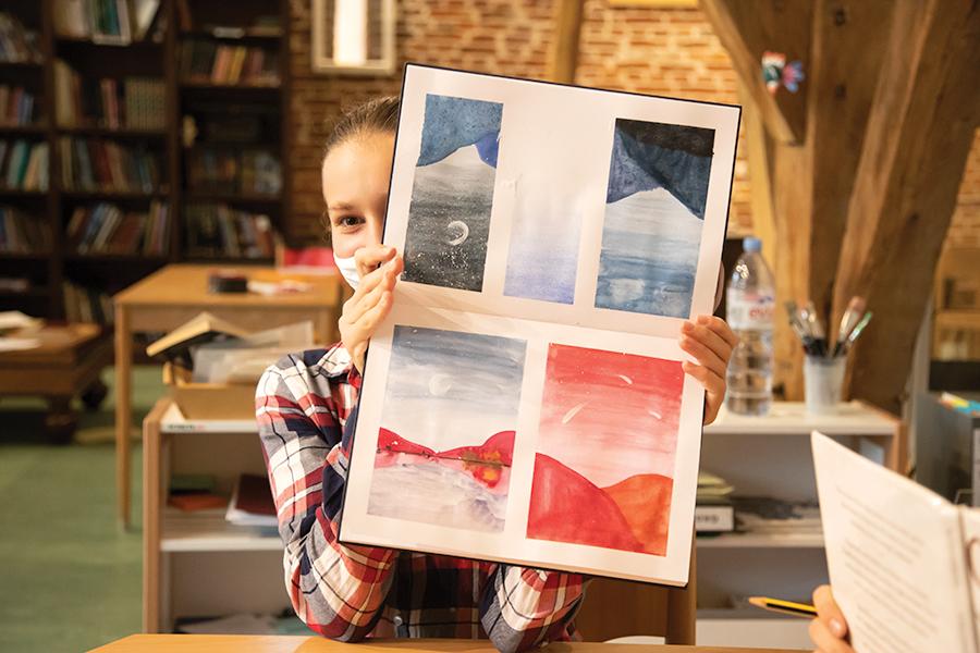 Visual arts is very much part of the integrated curriculum of the Primary. It is not an isolated activity only done during an allotted time but instead as a daily activity that is integrated in the students’ studies. They can make parts of the flower out of styrofoam, a volcano that really functions, and a river in the sandpit to learn about erosion. Creating beautiful posters and studies that contain their knowledge on plants, animals, historical periods, countries or continents in the process. Working with one’s hands and making things beautiful influences concentration and motivation, therefore art and academics should not be separated.